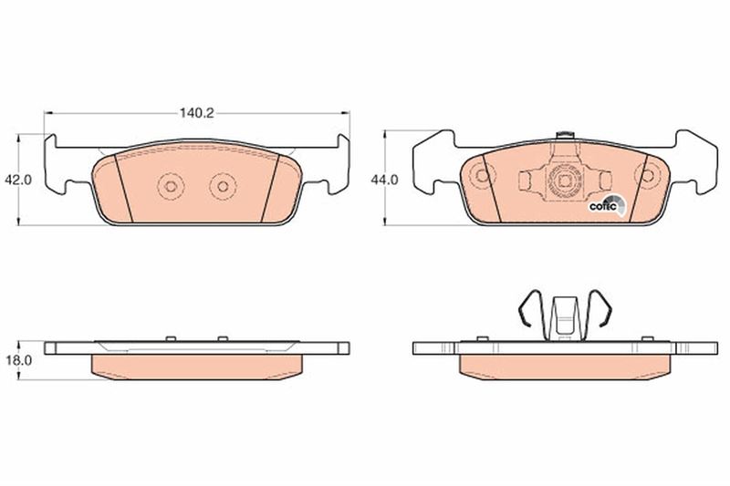 Ürün Adı: Ön Balata Clıo Iv 1.2 1.5dci 12 Dacıa Sandero Iı 1.2.1.2 Lpg 2012 Logan 12 140.2x18x42 Marka: TRW, Stok Kodu:TRW GDB2018, Oem Kodu:410609646R-410602396R