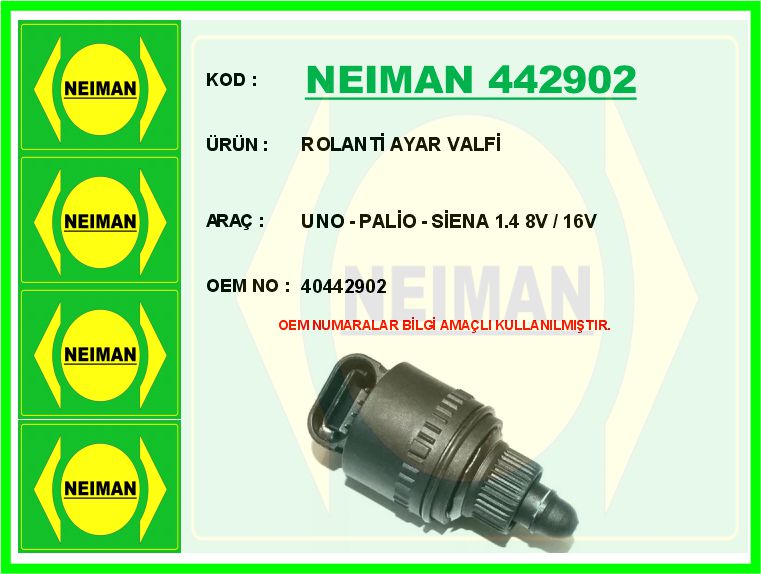 Ürün Adı: Rolanti Ayar Valfi Uno – Palio – Siena 1.4 8v / 16v Marka: BESCHER, Stok Kodu:ZZNEIMAN 442902, Oem Kodu:40442902