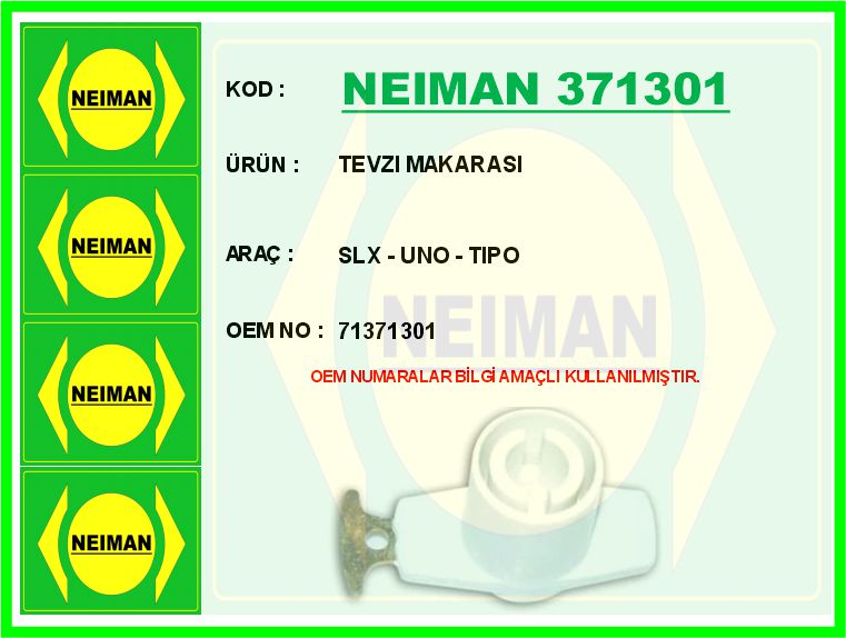 Ürün Adı: Tevzı Makarası Slx – Uno – Tıpo Marka: BESCHER, Stok Kodu:NEIMAN 371301, Oem Kodu:71371301